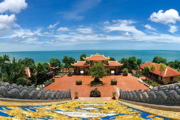Sau đó : Viếng thăm Chùa Hộ Quốc . Chùa Hộ Quốc còn được gọi là Thiền viện Trúc Lâm Hộ Quốc, là ngôi chùa được mệnh danh là lớn nhất Đồng bằng Sông Cửu Long. Với vị thế tựa lưng vào núi, mặt hướng ra biển, chùa Hộ Quốc là một trong những ngôi chùa đẹp và linh thiêng nhất ở Phú Quốc.